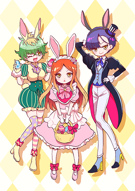 今週のイラストは、イースターバニーの三姉妹です。