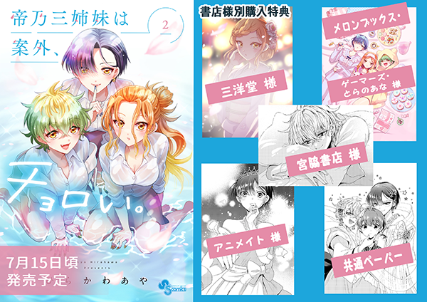 今週は、来週7月15日頃発売予定の、『帝乃三姉妹は案外、チョロい。』第2巻の、メッセージペーパーのお知らせです!