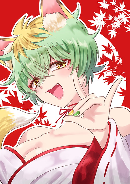 三和を狐耳にするのは決まっていたので、服は巫女さんにしよ~(^^)と思っていたのですが、巫女さんの衣装と似ている和服(袴)は、対局でもしょっちゅう着るので、