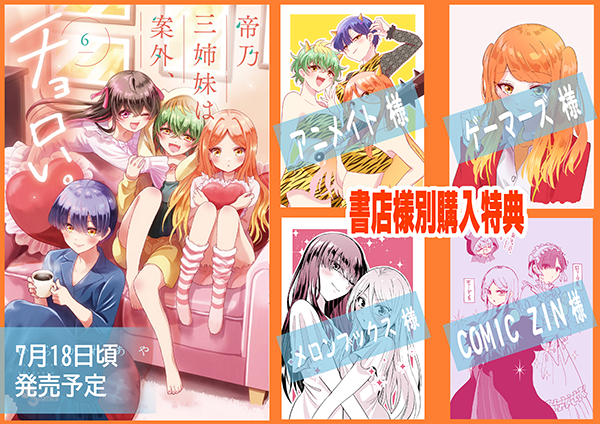 『帝乃三姉妹は案外、チョロい。』単行本第6巻、いよいよ来週7月18日頃発売です!!