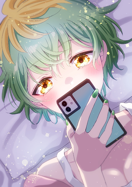 『暗がりでスマホを使う』の色塗り練習も兼ねて描いてみました。