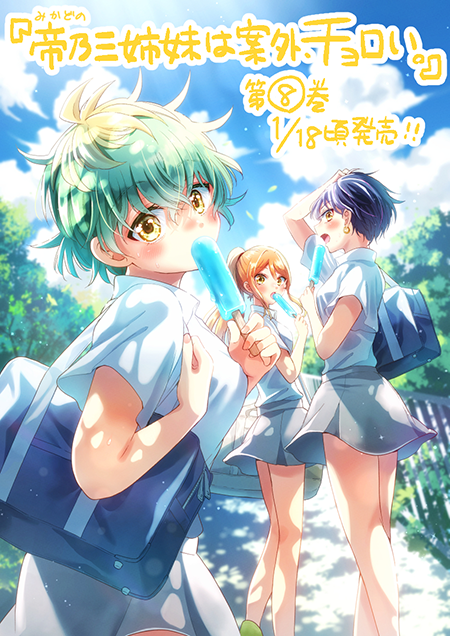 今回のイラストは、来週1月18日頃発売予定の『帝乃三姉妹は案外、チョロい。』単行本第8巻のカバーイラストです!