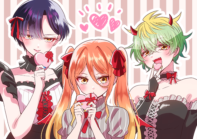 今週はバレンタインな三姉妹を描いてみました!