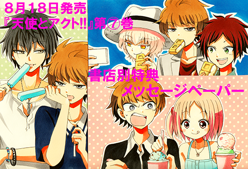 画像の通り、今月発売の『天使とアクト!!』7巻も書店別特典をつけさせていただきます(^^)/