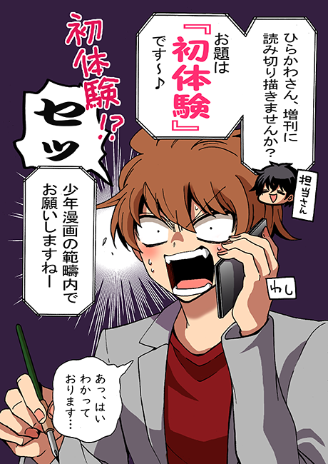 私の他にも、何人かの若手作家さん達が、同じ『初体験』をテーマに短編読み切りを描いてくださっているそうなので、十人十色の『初体験』読み切りが読めるという面白い企画です!