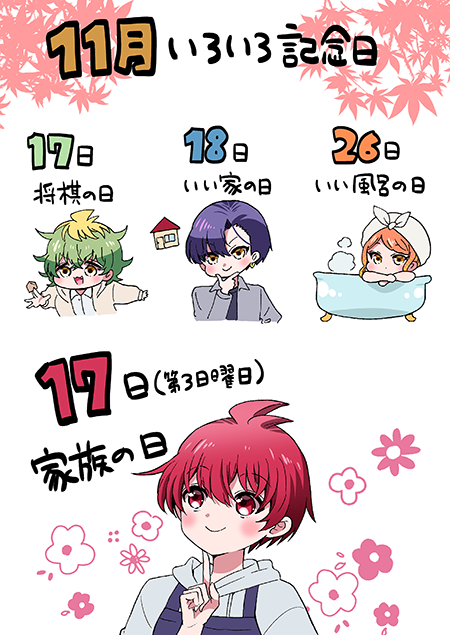 特に11月は『いい○○の日』のゴロ合わせで、たくさん記念日が作れそうです。