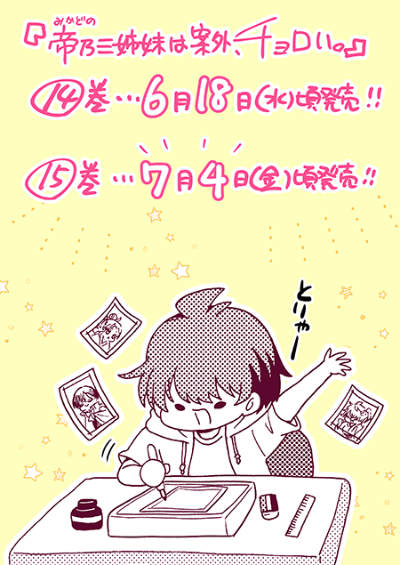 来週6月18日はいよいよ『帝乃三姉妹は案外、チョロい。』単行本第14巻の発売日です!