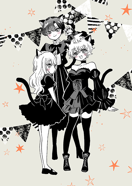 もうすぐハロウィーンなので黒猫三姉妹を描いてみました!